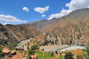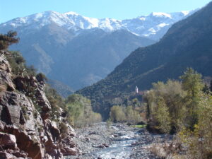 Head to the Ourika Valley (journey time approximately 1 hour). Located in the heart of the High Atlas Mountains, this valley is known for its impressive views and by the towns made of adobe houses hanging off the slopes of its mountains. With the help of a specialized mountain guide, we tour this place including the seven waterfalls that make up Setti Fatma.