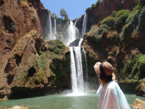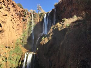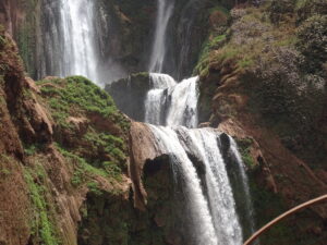 Transfer to the Ouzoud Falls (journey time approximately 3 hours). Located in the Middle Atlas Mountains, these majestic waterfalls are 350 feet (110 meters) high with interesting rock formations surrounding them.